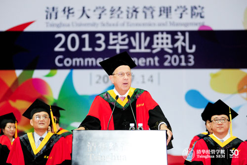 莱文校长还是清华经管学院改革与创新的热情坚定的支持者,他是第二位作毕业典礼演讲的顾问委员,也是第一位演讲的非华人嘉宾。