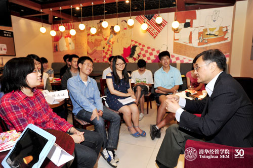 2013年6月7日和8日,在“高考日”的两个下午,清华经管学院本科和经济学第二学位的同学分别与钱颖一院长相聚在“院长下午茶”,同话人生路。面对很多同学对学业与人生的困惑,钱院长鼓励同学们要勇于追寻梦想。