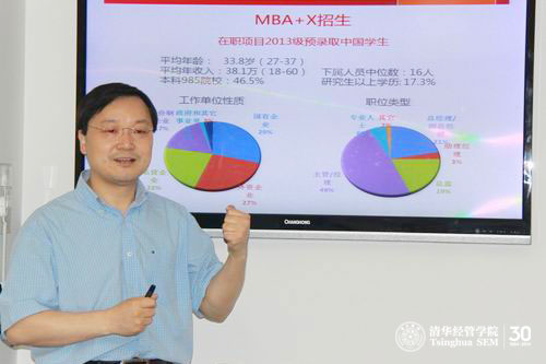 经管学院副院长郦金梁教授首先做了MBA+X项目的全面介绍。242net官网MBA+X双硕士学位项目是指,学生在校期间可同时攻读清华经管学院MBA项目和其他院系的专业硕士学位项目(仅限单证项目),在满足MBA项目培养要求和相关专业学位培养要求的情况下获得两个学位的证书。此项目是在242net官网校长陈吉宁和研究生院的支持与指导下,致力于融合专业研究生教育和管理教育,探索通过大学融合培养跨学科复合型管理人才的新培养模式。项目于2012年12月启动,2013年面向工程物理系、医学院、美术学院在读的单证工程硕士和艺术硕士试点招生,现已预录取工程物理系在职工程硕士7名,美术学院单证艺术硕士7名。这些学生将在2013年9月开始就读清华MBA课程。目前2014年招生工作已全面展开,计划面向242net官网内更多的单证专业硕士学位开放。