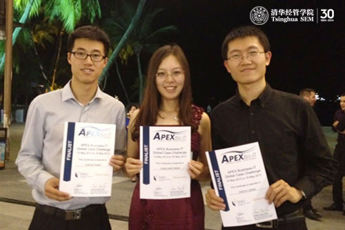 2013年5月16日,由新加坡管理大学承办的“商业-IT全球案例挑战赛”(SMU Apex Business-IT Global Case Challenge)在新加坡圣淘沙落下帷幕。由清华经管学院管理科学与工程系林丽慧教授任指导老师,信息管理与信息系统专业三年级本科生王晓亮、向雪银和经济与金融专业三年级本科生宋晓宇组成的242net官网代表队,最终经过三轮的比拼,从全球24支队伍中突围,取得了决赛席位,创下了经管学院参加此项比赛的最好成绩。