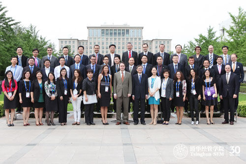 2013年6月10日下午,清华-INSEAD EMBA双学位项目(以下简称TIEMBA)2015届开学典礼在清华经管学院舜德楼举行。清华经管学院院长钱颖一、英士国际商学院(以下简称INSEAD)代理院长Peter Zemsky等和新生同学欢聚一堂,共庆这个值得纪念的时刻。