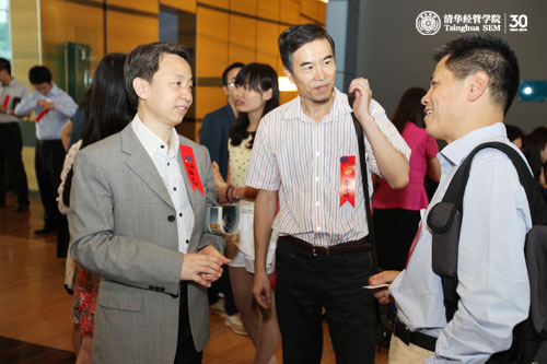 钱院长说,本科教育改革主要围绕通识教育、个性发展以及国际化三个方面开展,经过几年的实践探索,已取得广泛关注与认可;2012年是EMBA项目十周年,学院制定出“清华EMBA创新发展2012计划”,进行了从教学手段到课程体系的一系列创新;学院基于“大学中的商学院”的独特优势,创造性地推出“MBA+X”双学位项目,即将开设的管理学、工商管理专业的本科第二学位,并在过去的一年开展了“走进商学院”和“走出商学院”系列论坛,加强与大学其他院系更好的融合交流。钱院长介绍了一个月前启动的清华x-lab项目,该项目以经管学院为主,与其他11所清华院系合作共建,是一个创意、创新、创业人才的培养和发现平台,本身也是一个重要的教育创新;学院领先全校乃至全国的教师人事制度改革获得多方肯定,2012年被列为学校深化人事制度改革的试点单位,将有秩序地稳步推进;学院的年度重大活动通过一系列照片展示,包括了校庆返校日、学院毕业典礼、清华管理全球论坛、顾问委员会会议、新年晚会等;花了半年多的时间群策群力所制定的学院2013-2015三年战略规划,选择了大师、大楼、博士生培养改革、更高层次的国际化、经济学科加快发展、管理学科与大学融合等六项重点工作进行突破。整个院情报告全面详实,生动风趣,在场校友听得聚精会神。