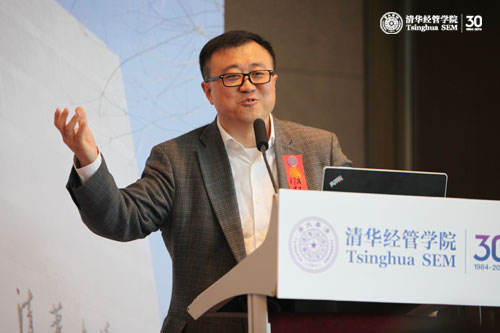 钱颖一院长首先代表学院发表了院情报告,他主要围绕本科教育改革、EMBA项目创新发展2012计划、与大学融合战略、教师人事制度改革、清华经管学院年度重大活动、学院三年战略规划以及2014年30周年院庆活动等七个方面,向校友们较为全面地回顾介绍了学院近年来的重大改革创新及未来工作的重点。