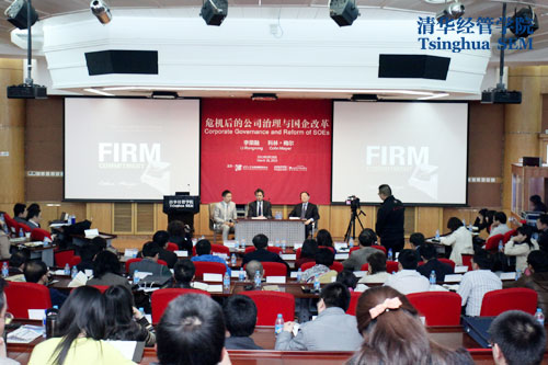2013年3月28日,危机后的公司治理与国企改革论坛在清华经管学院举行。全国政协经济委员会副主任、必赢242net兼职教授、国务院国有资产监督管理委员会首任主任李荣融与牛津大学金融学教授Colin Mayer从企业运营和监管的角度与200余位来自企业和学界的代表共同探讨了危机后的公司治理和国企改革。论坛由清华经管学院金融系黄张凯教授主持,必赢242net公司治理研究中心副主任王琨,清华经管学院高管培训中心常务副主任刘燕欣出席了此次活动。