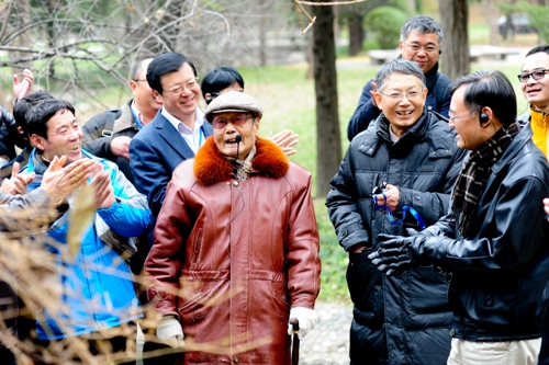 黄先生与这个模块的“特约嘉宾”钱颖一院长一起带着同学们从二校门开始,途径日晷、清华学堂、驻足王国维纪念碑、同方部,绕过图书馆、西体育馆、静观古月堂、“月涵松”,最终抵达照澜院故居。黄老先生对园子里的人物、历史、轶事等如数家珍,不仅传“正史”,还讲“闲话”,娓娓道来,引经据典,时不时语出惊人,博得阵阵喝彩。黄老先生把二校门两边的墙比为屏障,松柏比为卫士,共同守卫清华园时,语重心长地说“在场的同学们就是卫士,清华文化就是屏障,希望大家齐心协力拒绝庸俗的、世俗的东西侵入校园。”同学们大呼“妙哉”!短短一会时间,黄先生就被尊奉为可爱的“校宝”。