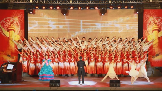 活力四射的腰鼓,激情昂扬的朗诵,优美动听的领唱,温婉动人的舞蹈,整齐有力的队列,随风舞动的国旗……每一位参赛的经管同学,都全身心地投入到演唱当中。别出心裁的表演形式,配合着动人的合唱,同学们完美地诠释了选曲的主题。《江山》的柔美与《走向复兴》的铿锵,截然不同的曲风,相互交织,唱出了清华经管人肩上的责任与心中的希望。