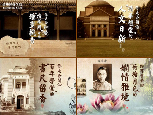 一滴水,折射大千世界;一门课,带你探究清华。2012年9月19日晚,在清华EMBA2012年秋季新生入学酒会上,在唯美的解说词营造的诗情画意中,清华EMBA教育中心精心打造的《清华探究》课程介绍,在一幅幅历久弥珍的画面中缓缓展开,从建校初期的泛黄照片,到西南联大时期的师生合影,清华百年历史中的杰出人物徐徐走来。而之后一帧帧展现高新科技的动感画面又把大家拉回到现实中,创新气息扑面而来。这正是《清华探究》的课程特色所在:文理会通,商工会通,让同学们在故地重温中领略清华人文历史;在现场体验式教学中接触科技前沿新知,探寻管理与创新的未来之路。2012年秋季入学的EMBA同学将首次体验这门全新的课程。