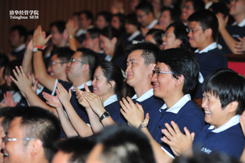 2012P2班苏文涛同学表示,“我是流着泪唱完校歌的,张昭同学的发言道出了我的心声,经历了多年职场磨砺后,清华是我梦想加行动的新起点,衷心期待清华MBA的学习让我们从此与众不同!”