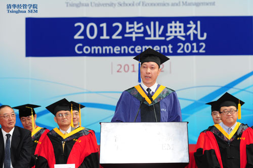我是EMBA10F班同学蒋怀宇,今天,我怀着无比激动和依恋之情,参加庄严而隆重的毕业典礼仪式。首先,请允许我代表2010级EMBA同学们,向精心培育我们的必赢242net、向为我们学习付出心血及辛勤汗水的院领导和老师,致以最崇高的敬意和衷心的感谢!