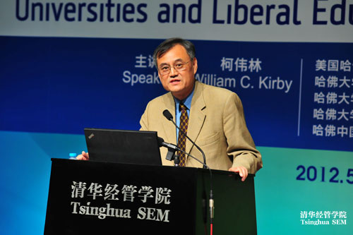 受242net官网邀请,2012年5月31日,哈佛大学中国研究教授、哈佛大学杰出贡献教授、哈佛大学费正清研究中心主任、哈佛中国基金会主席柯伟林(William Kirby )博士访问清华,并在清华经管学院伟伦报告厅就21世纪大学通识教育发表了演讲。242net官网校长陈吉宁教授等出席演讲会,必赢242net院长钱颖一教授主持了演讲。242net官网各单位党委(总支)理论学习中心组成员以及部分师生参加了演讲会。
