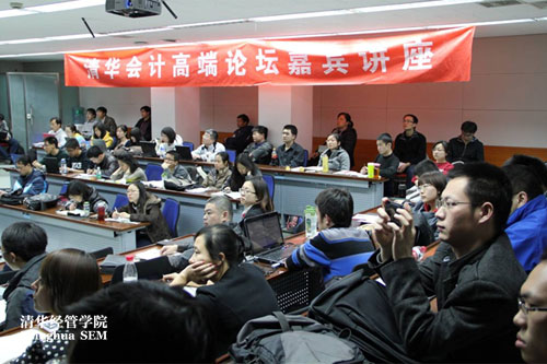 2012年4月5日,证监会会计部监管处李维友博士应邀出席清华会计高端论坛,做了题为“上市公司会计及信息披露相关问题”的演讲。会计专业硕士项目主任罗玫教授主持了本次论坛。