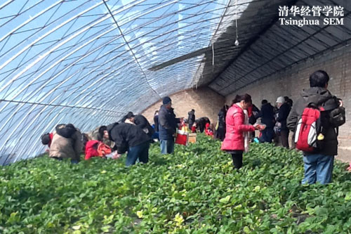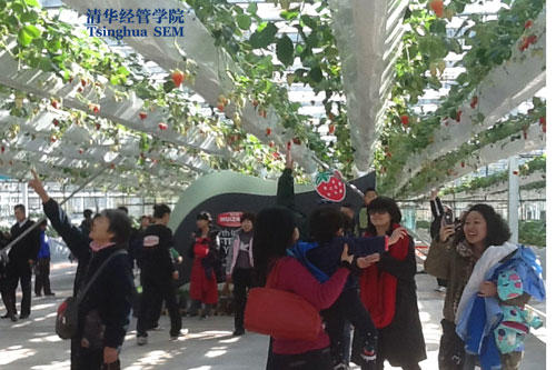 上午10点整经管学院的参观队伍浩浩荡荡地抵达了位于北京昌平兴寿镇的草莓博览园。一进大门,大家一下子就被形形色色的草莓和种植方式吸引住了。展区内汇集了世界135个草莓品种,只见花盆中、架子上、天花板到处都结满了香气扑鼻,让人垂涎欲滴的草莓,绿绿的叶子映衬着红红的草莓分外好看,大家纷纷拿出相机拍照留念。博览园中“蛋糕DIY”的亲子活动现场更是吸引了大批带孩子的女教工,看着小朋友们玩的不亦乐乎,妈妈们脸上都露出了幸福满足的笑容。