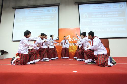 联欢会上,大家共同观赏了由老师们自编自演的精彩节目,欢声笑语不断。联欢会在高级管理培训中心的开场锣鼓中拉开帷幕,离退休教职员的小合唱“我和我的祖国”展示了经管学院前辈们的风采,战略系吴维库、焦捷合说的相声“人名串联”巧妙地把学院老师们的名字融入故事情境中,不时引来阵阵掌声和笑声,工会女同事们的瑜伽表演,金融系的小合唱,营销系的舞蹈“北风吹”,教学办的苏格兰草裙舞以及信息办的歌舞“小沈阳”等节目更是在会场掀起一波又一波高潮,给人留下深刻的印象。钱颖一院长还带领全体院务会成员给大家拜年,大家共同憧憬经管学院更加美好的未来。联欢会上还进行了激动人心的抽奖活动,大家互致祝福,喜迎新春。(供稿 沟通办)