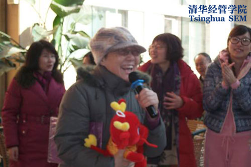 紧接着,参加团拜的人员共同参与了击鼓传花的游戏。幸运地得到龙年吉祥物的王以华、谢文惠、张进、孙静等老师纷纷向大家送上新春的祝福,并由衷感叹经管学院这个温暖大家庭带给他们的归属感和幸福感。