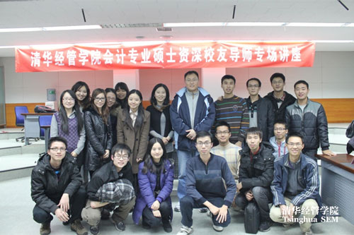 会计专业硕士资深校友导师专场讲座目的是为了让会计专业硕士的同学们在求职的准备过程中,对与会计专业相关的各类就职领域和相关职业发展有深入的了解,为寻找适合自己的职业做充分的准备,同时也为同学们与业界资深校友搭建联系平台。(供稿 会计系 编辑 沟通办)