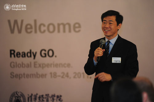 宝马集团高级副总裁菲利浦·埃勒,清华经管学院金融系主任、弗里曼讲席教授李稻葵,以及清华经管高级管理培训中心国际项目组总监谢绮红出席了9月18日的欢迎晚宴,清华经管学院客座教授斯卡·科裴拉主持。菲利浦·埃勒表示,这次培训对宝马公司来说是一次难得的体验,中国以其快速发展的经济速度以及庞大的消费群体占据着越大越大的市场份额。而宝马公司则需要打破固有的观念和思维模式,跟上时代的变化,所以此次在中国、在清华的培训对宝马公司了解中国市场和消费者具有非常大的帮助。