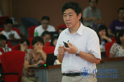 在夏令营期间,金融系郦金梁教授举办了讲座,为同学们展示了近年来中国经济实现的成就以及面临的挑战并与同学们讨论了金融专业大学生的历史使命和社会责任,引发了同学们深思。金融系杨之曙教授举办讲座,图文并茂地阐述了其近期关于“投资者的行为对资产价值的影响”的研究;他巧妙的实验设计和审慎的数据处理向同学们展现了学术研究的魅力。金融系陈秉正教授举办的讲座全面阐述了国内外保险业的发展现状,预测了行业的发展趋势。他总结了清华经管学院保险专业在教学与研究方面的独特优势,引发了许多同学对保险专业的强烈兴趣。黄张凯、何平、杨之曙和郦金梁等教授特别与金融学博士项目申请人座谈,和同学们讨论了金融学博士的培养模式和职业发展前景。这种面对面的深度交流对于博士项目申请者显得尤其珍贵:一方面参与座谈的教师引导他们及早判断自己是否适合学术导向型的博士项目,另一方面教师们的介绍也启发了他们感兴趣的研究方向。