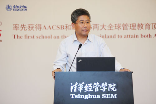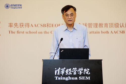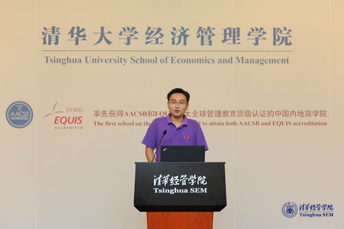 代表新生致辞的是经博11班学生伍赟。他说, 当今中国正经历着深刻的变革。作为清华经管学院的博士生,如果不去思考、不去研究变革中涌现的大量问题,不去参与到这些变革中,是“非常遗憾的一件事”。 他说,独立思考的能力对于博士生来说至关重要。这种思考不仅应体现在学术问题上,也应体现在对人生、责任、价值的思考上;因为“为学先为人”。