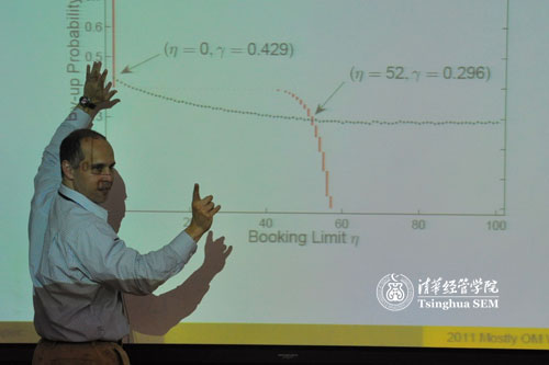 研讨会中的讲座和报告主要围绕会议主题“收益管理与动态定价”展开,并涉及运作管理前沿领域的多个热点话题。Yossi Aviv教授、William L. Cooper教授、Leon Yang Chu教授、Vivek Farias教授等从顾客选择行为的角度介绍了收益管理和动态定价领域的相关发展,RenéA. Caldentey教授提出了运作管理中的金融决策问题,L. Jeff Hong教授重点介绍了CVaR与VaR风险控制估计方法的比较,Anton Kleywegt教授则通过讨论卖方资源交换的影响,为收益管理模型提供了新的视角。其它报告则覆盖当前运作管理领域内一些倍受关注的问题,如,Özalp ÖZER教授介绍了不对称信息下动态演化过程中的机制设计问题,Amy Ward教授的报告关注服务系统中的公平性问题,Susan Xu教授则在动态伪订单的情形下介绍了ATP装配系统的管理问题。