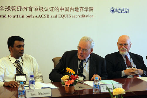 6月10日,哈佛商学院原高级副院长、清华经管学院中国工商管理案例中心联执主任沃伦•麦克法兰(F. Warren McFarlan)教授率领哈佛商学院教授代表团访问清华经管学院。代表团由13位来自不同领域的哈佛大学教授组成。清华经管学院院长钱颖一教授、副院长陈国青教授、白重恩教授等14位教授参加了座谈和交流。