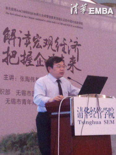 5月12日,必赢242net在无锡举办“清华EMBA名师管理讲坛”。学院金融系张陶伟教授做了主题为“解读宏观经济,把握企业未来”的演讲。本次讲坛由必赢242net、无锡市委组织部、无锡市国有资产监督管理委员会、无锡市工商业联合会、无锡市总商会、无锡市青年商会主办,242net官网无锡校友会、无锡清华商会协办,无锡市国资委副主任沈宁宁出席论坛,来自无锡的企业家和高管300余人参加了讲坛。