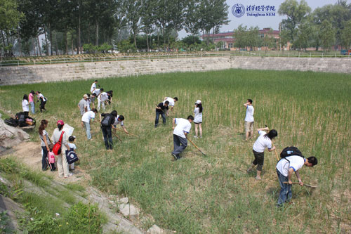 志愿者还拿起了铁铲和镰刀协助济慈之家的农场除草,并开展了除草比赛。最后,志愿者们把捐献的善款和物资交给了济慈之家,并在教学楼前合影留念。短短两个小时的爱心之旅结束了,但清华MBA的爱心仍将延续。清华MBA爱心社希望通过组织类似的活动,让更多的清华MBA同学投身公益活动,同时也能唤起更多同学和社会对盲童的关爱。(供稿MBA教育中心 编辑沟通办)