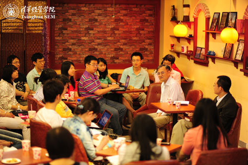 2011年5月19日下午,在经管学院舜德咖啡厅举行了每学期一度的“与院长共品下午茶”本科生专场和经济学第二学位(“经双”)本科生专场。钱颖一院长与几十位本科生们亲切交流,学院本科项目学术协调人钟笑寒教授和经双项目学术协调人杨思群教授分别出席了这两场活动。