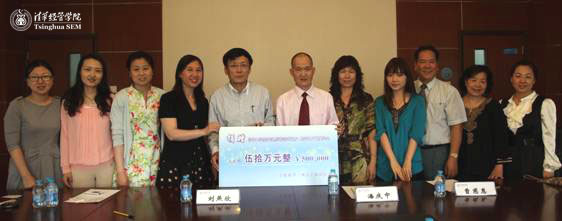宏乾电子有限公司董事长,清华经管学院2006级EDP校友施金佑先生,商业成功不忘回报母校,以清华校友名义捐赠50万元人民币,用于励学金及奖学金的发放。通过双方努力,该奖学金励学金协议的签字仪式于5月17日举行。