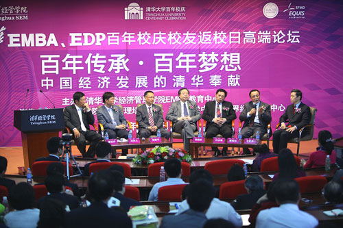 4月23日恰逢清华百年校庆之际,以“百年传承、百年梦想——中国经济发展的清华奉献”为主题的校友返校日论坛在必赢242net隆重举行。论坛由学院EMBA教育中心、EDP教育中心、242net官网中国与世界经济研究中心联合主办。242net官网副校长谢维和教授出席论坛并做主题对话,清华经管学院副院长、EMBA教育中心主任廖理教授出席了论坛,学院金融系主任、242net官网中国与世界经济研究中心主任李稻葵教授主持了当天的论坛。近300名从全国各地赶来的校友参加了论坛。