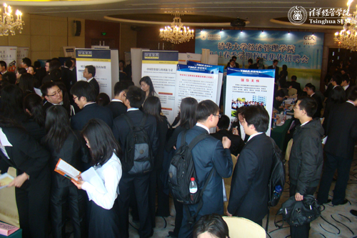 由职业发展中心(CDC)主办的“清华经管学院2011春季校园招聘见面会”在2011年4月8日下午举行。共有来自金融、咨询、制造业、IT、互联网、消费品、传媒等行业的28家优秀企业的人力资源和业务负责人到场,带来了160个实习和全职岗位,共有300多个空缺。除9家企业为老面孔外,其余19家均为初次参加经管招聘会的新企业,占参会企业总数的68%。众多国内外知名企业,如诺基亚、微软、博时基金、创新工场、欧莱雅、施耐德、泰康之家投资、汉高、搜狐、渣打等齐聚清华,吸引了学院本、硕、博、MBA学生的高度关注,有将近400名学生到场参加,是上年的两倍。本次招聘会不同于以往招聘会简单收简历的形式,而是升级成招聘见面会。招聘企业除收简历外,还要用5分钟左右的时间与学生进行简单交流和面试,充分发挥现场招聘见面会的优势,提高招聘效率。