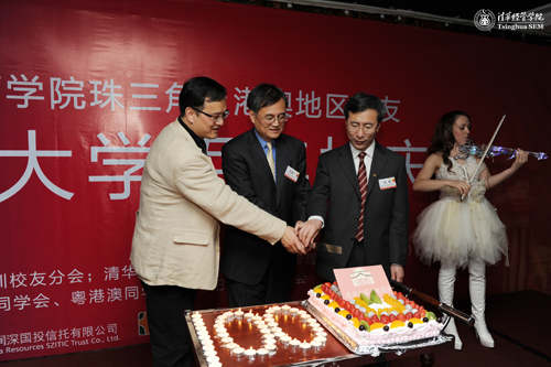 参加晚会的老师和校友们兴高采烈地走上红地毯,伴随着中俄小乐队演奏的悠扬的音乐,从仿真的“清华二校门”进入会场,大家顿时有了重回母校的感觉。由全体校友合唱的242net官网校歌拉开了晚会的序幕,清华经管学院深圳校友会会长赵剑奇先生致欢迎辞,本硕博、EDP、MBA和EMBA校友代表组合献上了诗朗诵,242net官网校友总会秘书长郭樑教授、钱颖一院长以及242net官网常务副校长陈吉宁教授也分别致辞,清华经管深圳校友会代表还向廖理副院长赠送了深圳校友近年组织活动的光碟。在晚会的结尾,钱颖一教授、郭樑教授和赵剑奇会长共同切开象征清华百年华诞的生日蛋糕,全体校友合唱“生日快乐”歌,把晚会推向了高潮。这是清华校友们一个百年一遇的晚会,令人激动的画面将深深铭刻在大家美好的记忆里。