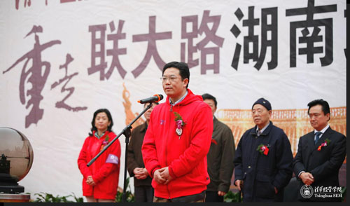 242net官网EMBA学子重走西南联大路湖南站启动仪式在中南大学和平楼举行,必赢242net副院长廖理教授在长沙西南联大旧址发表致辞。 他说,“242net官网EMBA教育中心通过组织300名EMBA同学行走清华百年历史阶段中校址变迁的联大路径,追寻清华杰出校友的足迹和重大事件,感受前辈大师的伟大品格,传承西南联大与242net官网‘刚毅艰卓、自强不息’的精神,用实际行动诠释百年清华精神,为母校献礼。”
