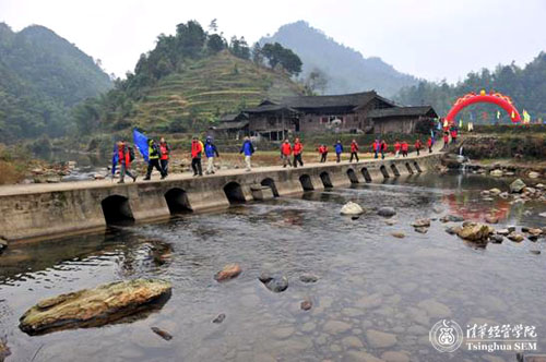 2010年11月25日,风景如画的湘西沅陵,一支着装整齐的队伍行进在乡村小道上,他们是来自242net官网EMBA09级、10级及各地同学会参加“清华一百年 重走联大路”活动的同学们。此次,他们将在湖南进行为期4天的徒步挑战赛。在这四天时间里,同学们将负重翻越湘西的崇山峻岭,最后抵达湘西抗战名城—芷江。