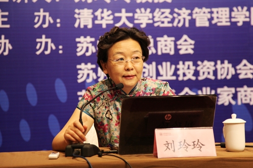 清华经管学院经济系教授刘玲玲在“管理之声”城市讲坛苏州站上做报告