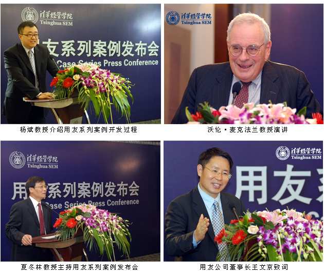 用友公司董事长兼总裁王文京表示:用友公司作为首个中国本土商学院开发系列案例的研究对象,用友公司代表了中国典型的企业商业实践,为中国商学院教学贡献了很好的实践素材。