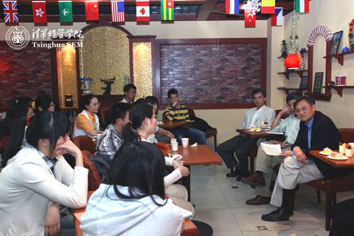 2010年5月14日下午,清华经管学院本科生和经济学双学位本科生的“与院长共品下午茶”活动相继在舜德楼咖啡厅举行。近50名本科生与经双学生来到现场,与钱颖一院长深入交流。