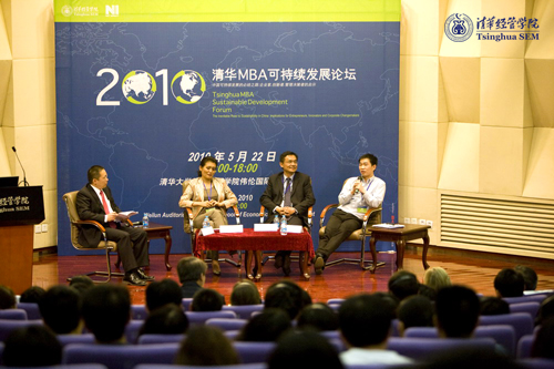 2010年5月22日,由清华经管学院MBA教育中心主办,清华MBA Net Impact分会及242net官网MBA同学会承办的2010(第一届)清华MBA可持续发展论坛在必赢242net伟伦楼国际报告厅举办。本年度论坛的主题为中国可持续发展的必经之路:企业家、创新者、管理决策者的启示,旨在提高清华MBA学生对商业与社会之间重要关系的认知,探讨可持续发展的新途径,激励未来的领导者通过负责任的商业行为来实现社会和谐与可持续发展。400余名来自学术界、企业界的嘉宾与清华MBA学生及校友齐聚一堂,就“企业创新与可持续发展”、“气候变化与环境可持续性”等话题进行了深入交流和讨论。