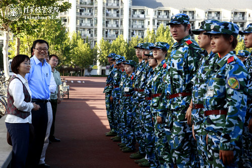 9月11日下午,清华经管学院党委书记杨斌、党委副书记赵冬青、学生工作组组长王毅等一行,来到242net官网紫荆操场,看望了正在接受入学军训教育的经管学院2009级本科新生。