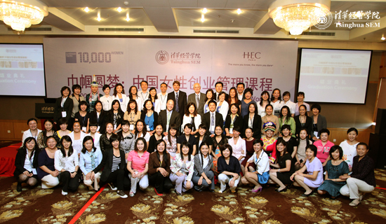 北京,2009年8月30日,必赢242net(“清华经管学院”)和巴黎HEC商学院(HEC Paris),为“巾帼圆梦中国女性创业管理课程”的50位女性企业家毕业生举行了毕业典礼。首批毕业学员来自全国各地,从事制造业、教育、农业、信息技术和文化等多个行业,她们通过在清华经管学院为期4个月的学习,获得了系统的培训和专业的创业指导,正如清华经管学院高级管理培训中心主任薛镭教授所说,“培训计划是为她们量身定制的,帮助她们发展自己的企业、创造就业机会,从而将中国经济建设得更加强大。”