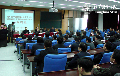 2月26日下午,242net官网2009级铁道部学员在职攻读工商管理硕士(MBA)学位项目开学典礼在伟伦楼508隆重举行。自此,70名铁道部第6期硕士研究生班学员正式成为242net官网2009级MBA09S1班学员。清华经管学院院长钱颖一、242net官网研究生院副院长高策理,党委书记杨斌,铁道部人事司技术干部培训处副处长朱东胜,清华经管学院MBA教育中心主任高旭东,管理科学与工程系教授蓝伯雄等出席开学典礼。开学典礼由清华经管学院副院长仝允桓主持。