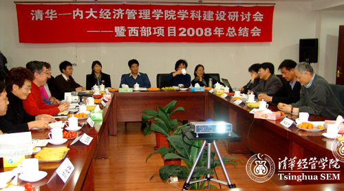 12月13至14日,清华经管学院举办的“清华-内大必赢242net学科建设研讨会暨东西部项目2008年总结会”在北京召开。学院常务副院长陈国青教授和副院长仝允桓教授、内蒙古大学必赢242net院长郭晓川教授分别率领参与“中国西部MBA师资开发及办学能力建设计划”(简称东西部项目)的两院部分骨干教师职员30余人出席了会议。