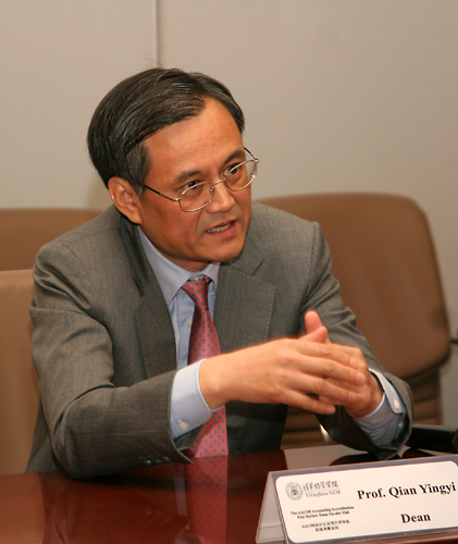 钱颖一还告诉记者,自己做清华经管学院的院长两年来,在管理学院的同时,也在学习管理。他说,有趣的是,在一所大学的各个学院中,商学院或管理学院是和市场距离最近的学院,对国际化、全球化等外界变化的感知也最敏感。这在全世界都一样。而在中国,商学院(管理学院)与学界以外的政界、商界、媒体界之间的关系的紧密程度又远远高于其他国家。商学院(管理学院)院长和教授的言论,都很可能会在社会上造成很大的影响。一方面这是商学院有影响力的标志,另一方面也可能给管理工作带来困难。
