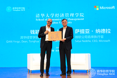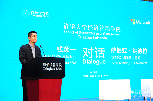 清华经管学院院长钱颖一教授对话微软CEO萨提亚•纳德拉活动现场